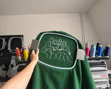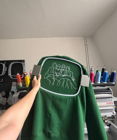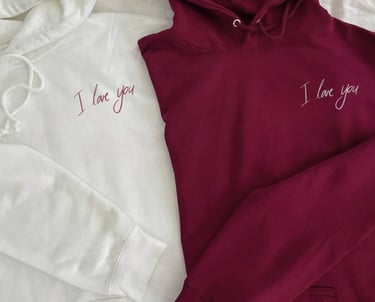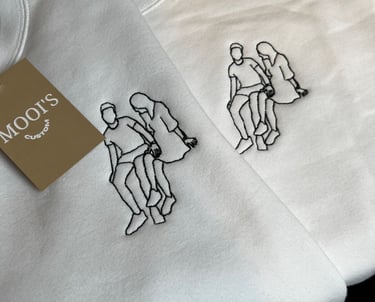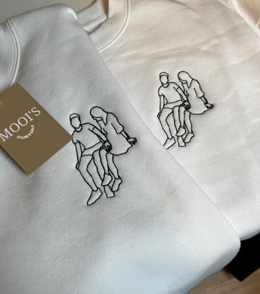 Širdžiai mielos nuotraukos kontūrai, įamžinti adatos dygsniais. Išskirtinis drabužis su stipria emocija. Rinkis iš asmeniško varianto arba kurk rinkinį porai.