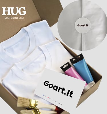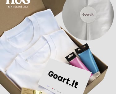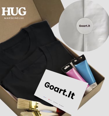 Rinkinys apkabinimo įamžinimui – dveji marškinėliai ir tekstiliniai dažai, leidžiantys palikti meilės atspaudą.
